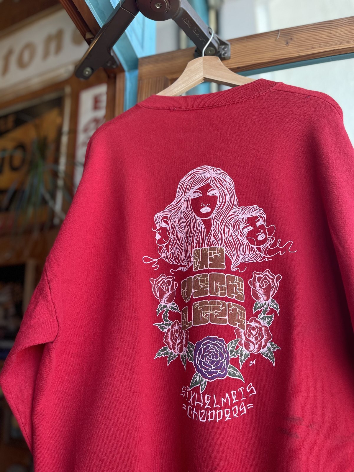 SIXHELMETS CHOPPERS “MI VIDA LOCA” VTG SWEATSHIRT DRAWN BY BOULEVARD FEVER ART L